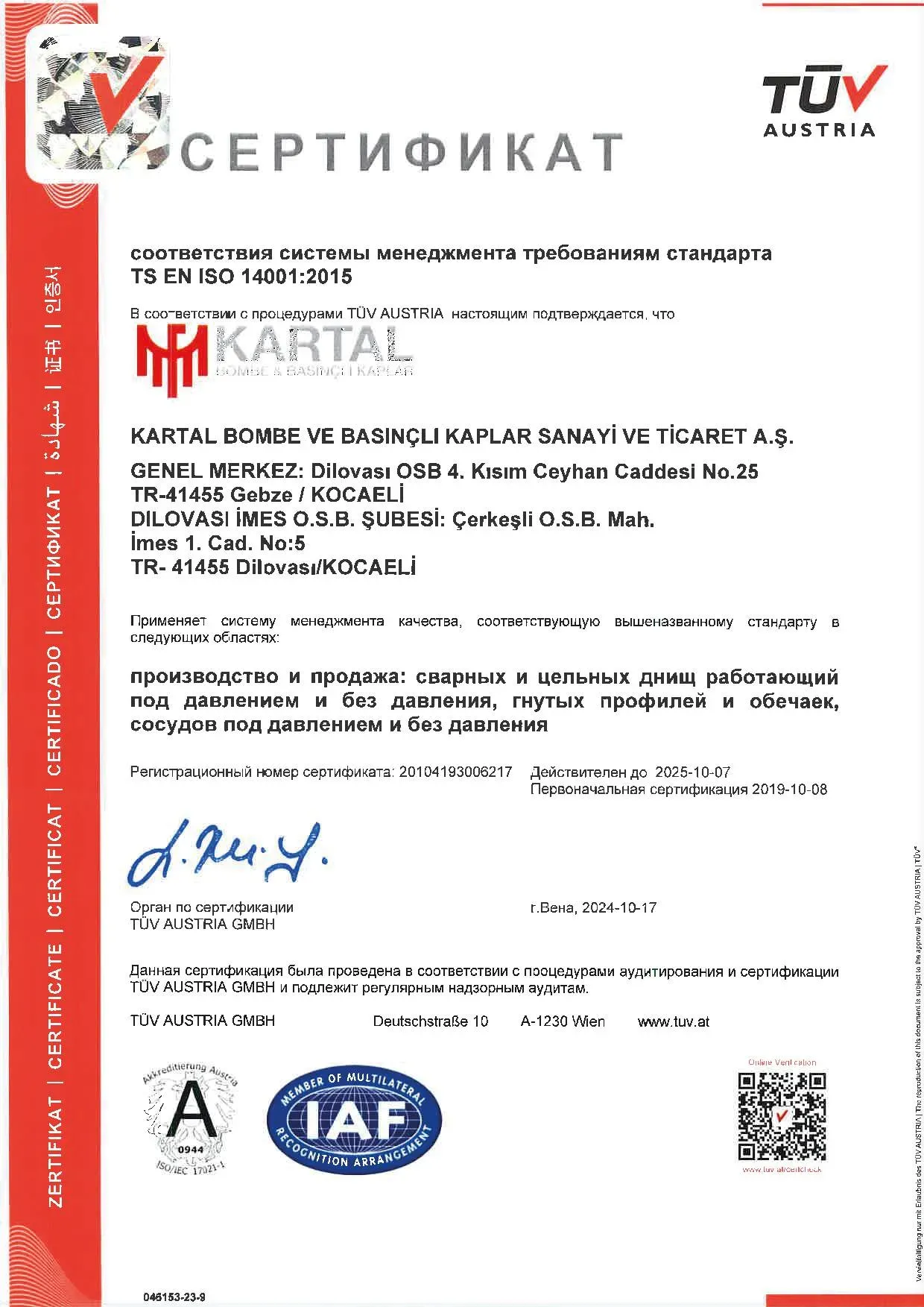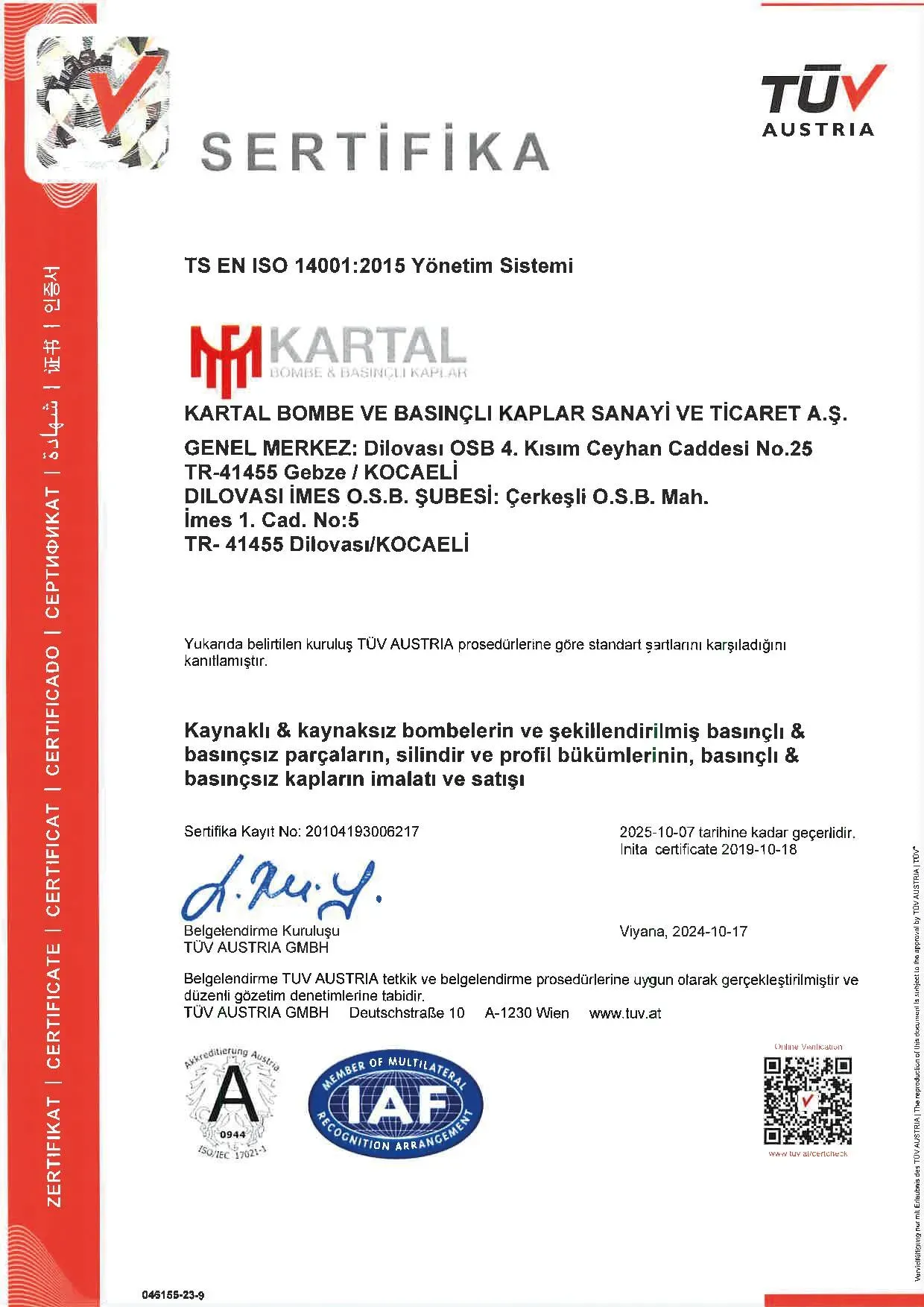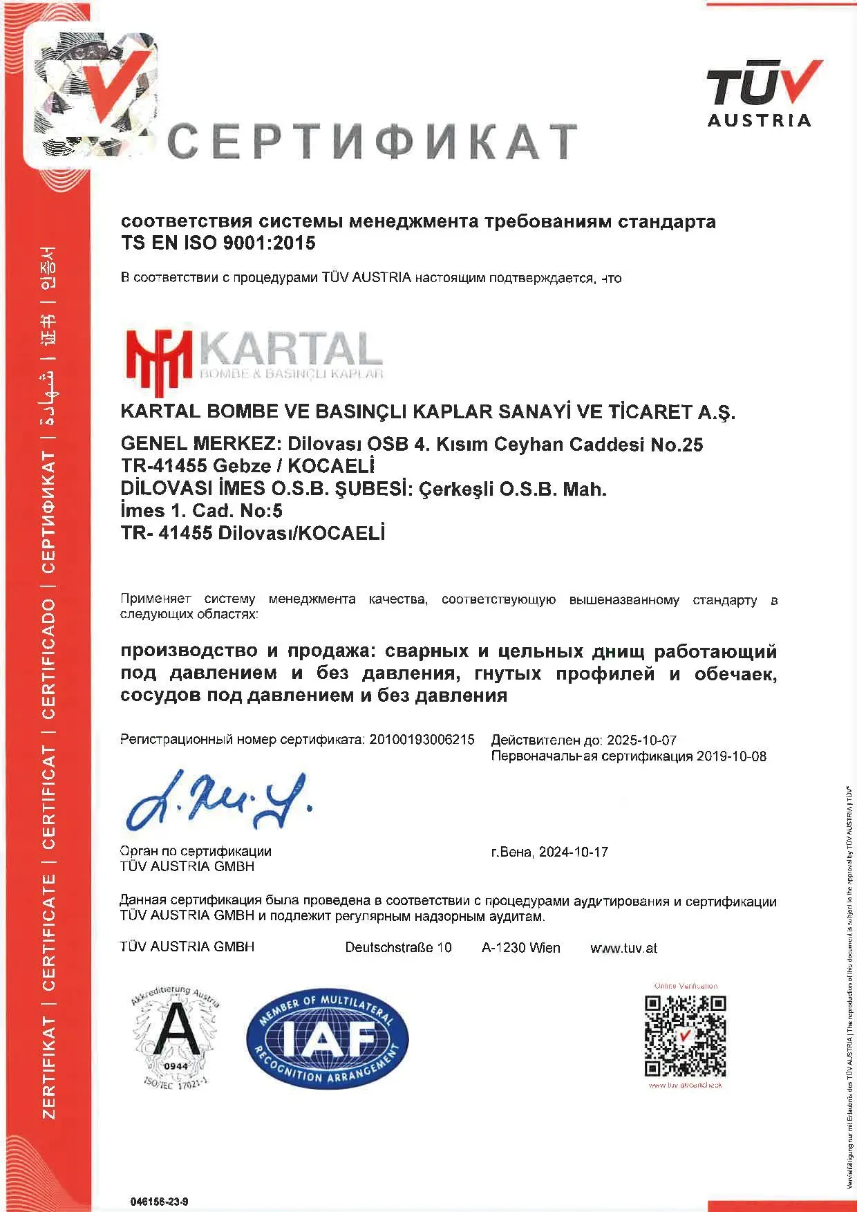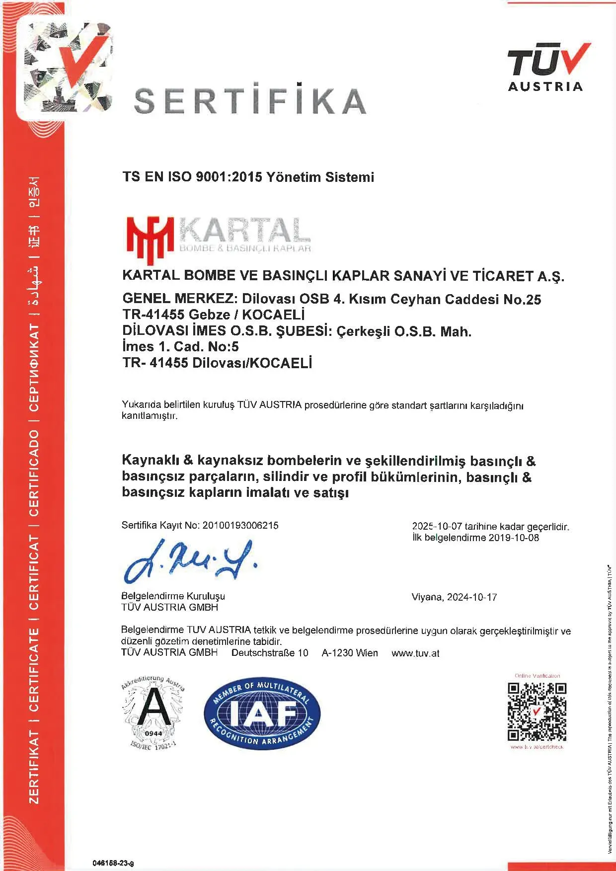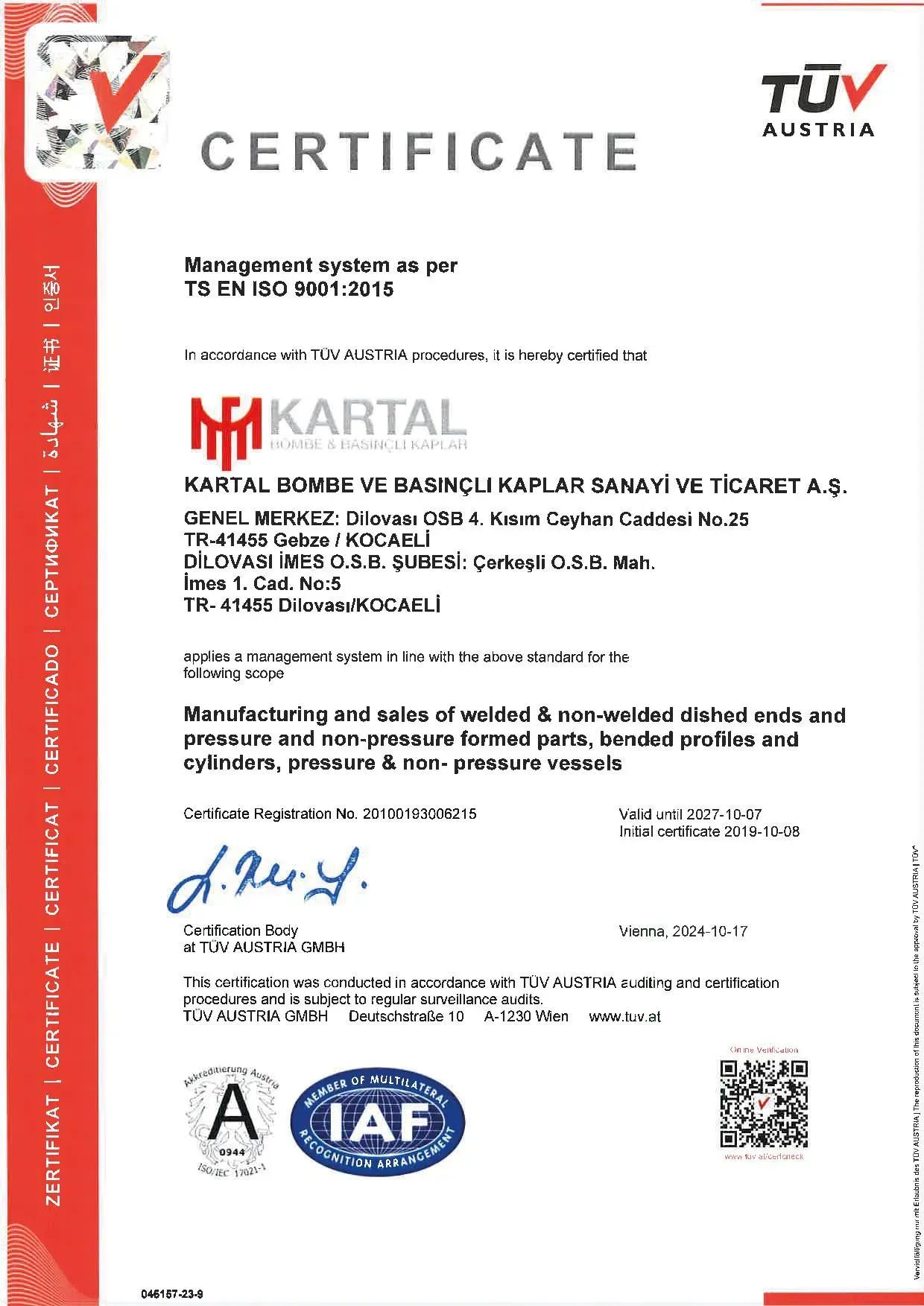 OUR QUALITY CERTIFICATES