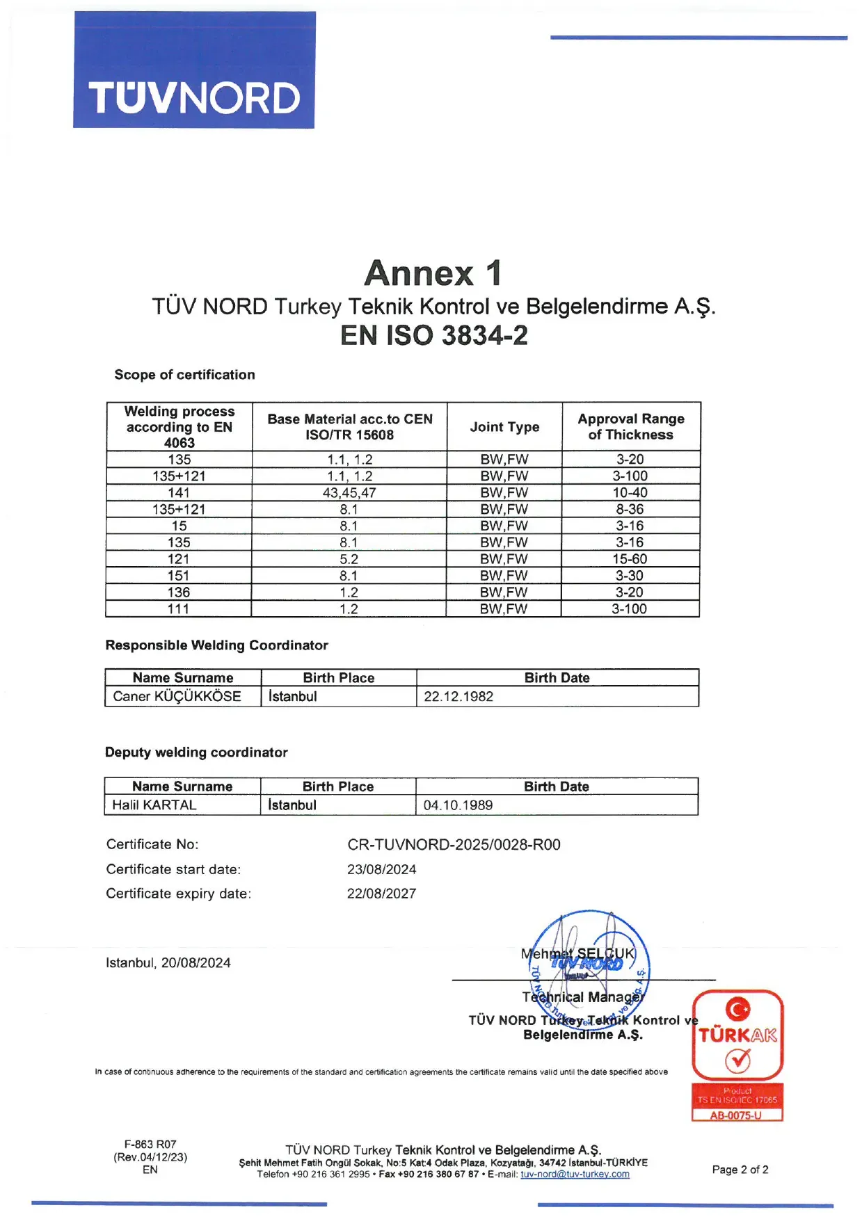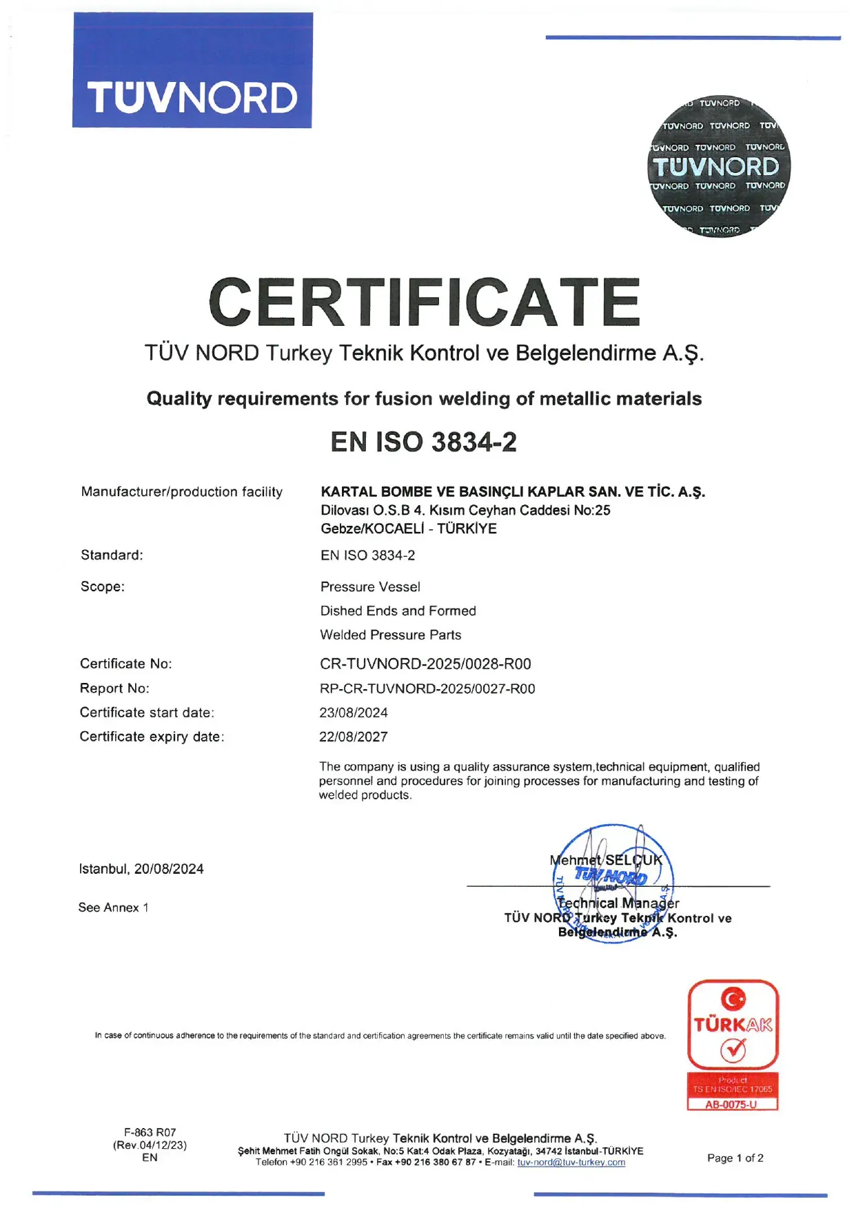 Our Certificates and Quality Documents